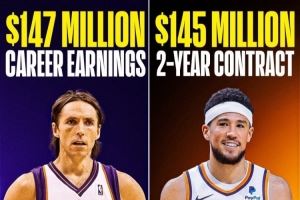 离大谱😱纳什生涯一共才挣了1.47亿 布克2年就1.45亿