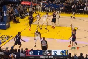 厉害了!库明加背身单打哈登 灵巧上下步打进还造成犯规