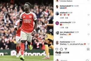 体育资讯10月5日讯 英超第7轮,阿森纳主场2比0击败西汉姆联。其中萨卡打进1球。这是萨卡英超第200场里程碑之战,同时也是萨卡英超参与进球数第100个。赛后,萨卡更新社媒晒照纪念自己英超第200次出场,并配文:200场♥️